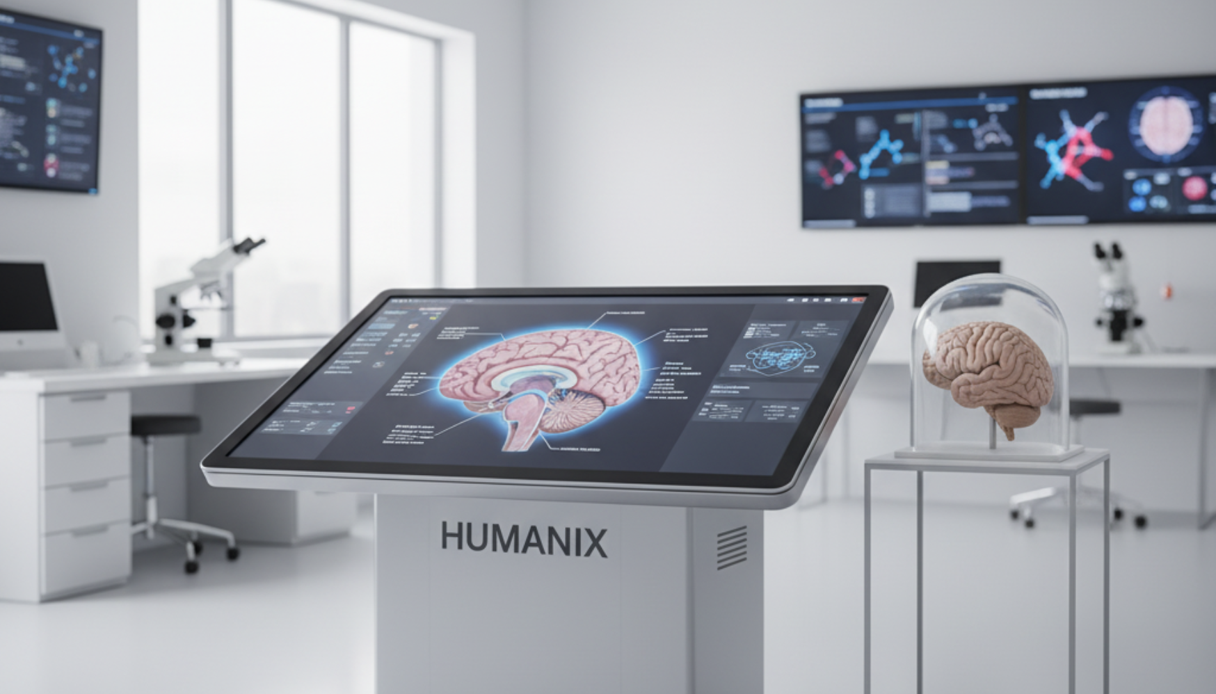 Desenvolvida com base em modelos do corpo humano gerados através da renderização de exames clínicos reais, o Lab Humanix permite a visualização detalhada dos sistemas anatômicos por meio de dissecações virtuais, cortes interativos e simulações clínicas. Como apontam Yammine e Violato (2015), esse tipo de tecnologia otimiza significativamente a apropriação de conceitos complexos, e a compreensão tanto da morfologia quanto da fisiologia humana, mesmo em ambientes não formais de ensino. Além disso, ao dispensar o uso de cadáveres ou peças biológicas, a plataforma atende a exigências éticas e legais cada vez mais presentes na curadoria de exposições científicas (CURY, 2019).