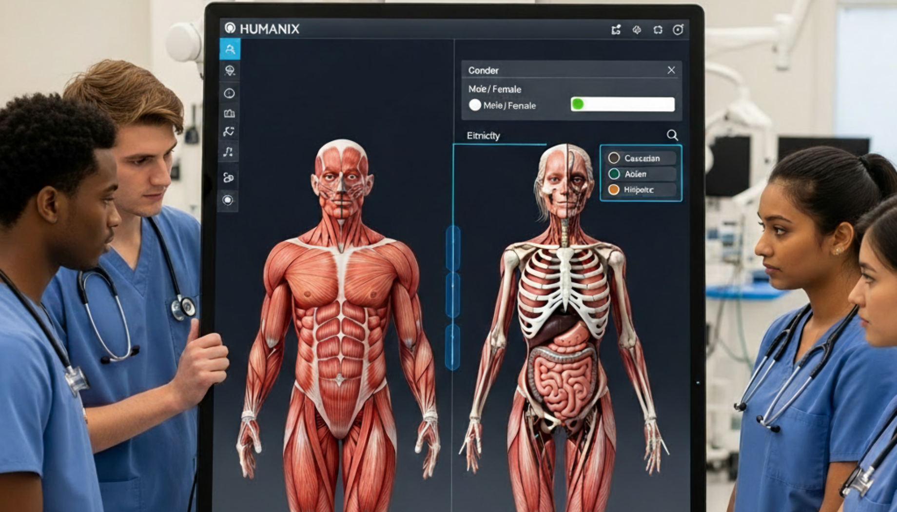 Outro recurso interessante de se destacar é a capacidade de personalização do modelo anatômico por etnia e sexo, tornando o aprendizado mais inclusivo e representativo, e contribuindo para a construção de uma educação mais equitativa e alinhada à diversidade humana. Para Estai e Bunt (2016), a utilização de tecnologias visuais e imersivas no ensino de anatomia promove maior apropriação de conceitos e maior engajamento por parte dos estudantes.